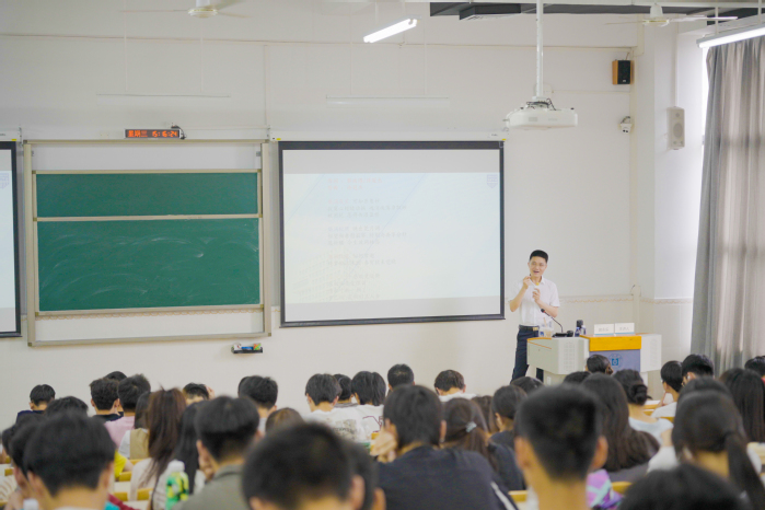 岭南文化作为中华优秀传统文化的重要部分,是中西文化交流的重要体现。为加深学生对岭南文化的理解及认识,坚定文化自信,厚植爱国情怀,4月17日下午,我校邀请深圳技术大学党委学工部、武装部副部长、国际合作与学生工作部副主任曾永乐来下主讲“坚定文化自信,担当新时代文化建设使命——细述岭南文化当中的家国情怀”主题讲座,讲座在旭日科技大楼B座208举办,全校各学院200余名学生代表聆听讲座。